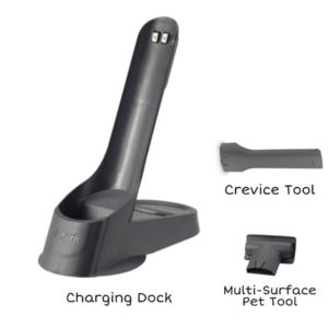 - The Shark ZS351 is purple, comes with a Duster Crevice Tool, a Pet Multi Tool, an Onboard Tool Clip, and a Wall Mount Storage Hook. Early version may includes a 12-inch Crevice Tool and a Pet Multi Tool.